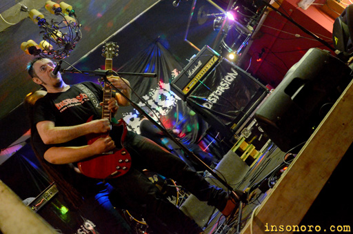 Después de una excelente actuación de Los Escapaos llegó el turno de Distorsión. Para mí era la primera vez que veía a esta banda en directo y también la primera vez que escuchaba alguna de sus canciones, y es que a pesar de ser muy míticos no habíamos coincidido. Me gustaron bastante los temas de este grupo. El público estaba enfurecido y votaba y bailaba violentamente al ritmo que marcaban los tres componentes de la banda. A mí la canción que más me gustó fue la de “El bueno, el malo y el hijoputa”, pero esa noche sonaron muchas más, temas como “Ke buen dios”, “Niño pijo”, “Ke les den”, “Bugi cojonudo” y “Puta sociedad”. Así hasta casi completar la treintena de canciones. De las últimas que sonaron aquella noche fue la genial “Lakasitos”. Después de casi dos horas de Distorsión nos quedamos más que satisfechos y nos fuimos a casa más contentos que unas castañuelas. Alegres por los dos conciertos que acabábamos de ver y por lo bien que nos tratan siempre en el Clandestino. ¡¡Así da gusto!!. |