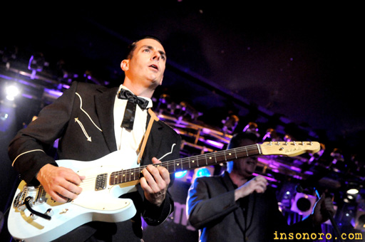 Nueva gira de Loquillo, esta vez junto a los Nu Niles, y como no podía ser de otra forma, visitando una vez más Euskadi, lo harían con dos fechas, Vitoria-Gasteiz y Bilbao, nosotros elegimos la primera, la de la Jimmy Jazz el pasado 17 de abril. En ambos conciertos agotaron las entradas, sabíamos que la fiesta estaba asegurada y es que somos muchos los que sentimos plena devoción por El Loco, tenemos su música prácticamente tatuada en nuestros corazones. “Código Rocker” es el nuevo álbum de Loquilo, recopila 14 temas publicados inicialmente desde 1979 hasta el 2011, regrabados para la ocasión y recuperando el sonido añejo del rockabilly que bien ha sabido plasmar junto con la participación de Nu Niles. Producido por Josu García, rescatando el rock and roll primitivo con esa actitud que le caracteriza al músico barcelonés, y ahora con tres pesos pesados como son los integrantes de los míticos Nu Niles, Mario Cobo a la guitarra, Iván Kovacevic al contrabajo y Blas Picón a la batería. Pocos minutos después de las diez de la noche, la banda salía a escena, recogiendo el calor que en esos instantes se respiraba y que no cesó en ningún momento hasta el final de la actuación, siendo la recta final un hervidero de entrega total. A estas alturas la mayoría ya sabíamos que nos íbamos a encontrar esa noche, salvo algún que otro despistado que quizás esperaba un repertorio repleto de los grandes éxitos de Loquillo y los Trogloditas, acudiendo a este tipo de citas por pura inercia.. Tras la intro “Hawai 5.0”, el primero de los temas que salió a escena fue “Eres un Rocker”, inyectando actitud a todos os presentes de aquellos años dorados de la música. Una puesta en escena a piñón, sin descansos, hasta el tercer tema no se pronunciaron para saludar a la peña, con esa declaración de principios marcados siempre por el “Channel, Cocaína y Dom Perignon”. Los sonidos de acordeón entraban a escena con el ritual de los corazones tatuados, ya sabéis, “Tatuados”, para luego continuar con “Por Amor” donde Josu García cambió su guitarra eléctrica por la acústica., luego cada uno de los integrantes de la banda tuvo su protagonismo, empezando por Mario Cobo continuando con Alfonso Alcalá a las teclas y por momentos al acordeón. El público se coreó todo el concierto y cuando llegaban las miticadas, más aún, un ejemplo fue con “El Hombre de Negro” que nadie fallo ni una sola letra. A Loquillo se le veía totalmente feliz, posando con esa actitud macarra y auténtica que sólo un rocker puede tener, continuando con los temas históricos de aquellos tiempos, como “El Crujir de tus Rodillas”, que grabó junto con Nu Niles en un casete que una rubia le regaló, allí fue el primer encuentro de lo que hoy podemos ver en nuestros escenarios. |