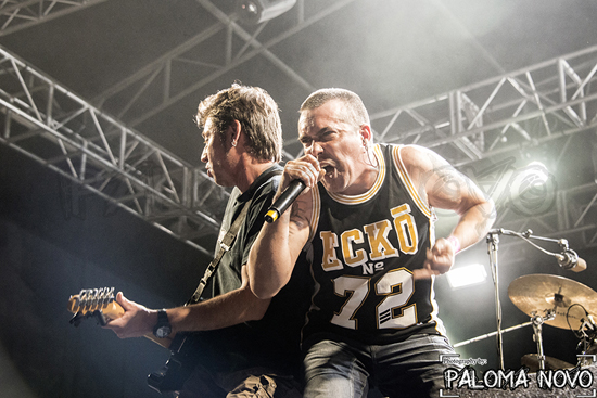 Era el turno de un grupo a la vanguardia del punk-rock dentro de nuestras fronteras; El Ultimo Ke Zierre, tercer grupo de la Comunidad Valencia, el cual no tiene nada que ver con los otros dos, lo cual dice mucho de esas tierras. Momento en el que pregunto al personal que grupos echan en falta , la contestación era unánime, todo el mudo decía muchos grupos: Narco, O´Funkillo, Martires del compás, Eskorzo… etc, pero lo más curioso que todos eran del sur . Buen apunte para el año que viene, que con el arte que tienen aportarían muchísimo. Los de Burriana salían a la palestra a por todas, desatados como en muy pocas veces los hemos visto. Poniendo en liza grandes himnos como “Abogado”, “Vuelta al infierno”, “Insurgentes” dedicado al eterno conflicto palestino, “Mis calzones” y el summum de la locura colectiva “Veneno”. Roberto a la voz (más conocido como “el feo”, mote muy discutido entre las féminas) se paseaba de lado a lado del amplio escenario, desatado, como si de una ráfaga del Mistral se tratase, arengando al personal, en cada corchea, en cada pulsación de Pedro el enérgico bajista. Seguía el intenso directo con el último acto “Tu me vicias”, “Lejos” del último álbum de estudio, y el apoteósico final, buque insignia de los castellonenses, “No tengo miedo”, al poder eterno de “Tus bragas” y “A cara de perro” así concluye un show, que nos da las directrices necesarias para bajar de tu mano al infierno, mezclando el amor y el sexo de manera soberbia, mostrando la tristeza de la pérdida y la admiración a la adicción en mayúsculas. |