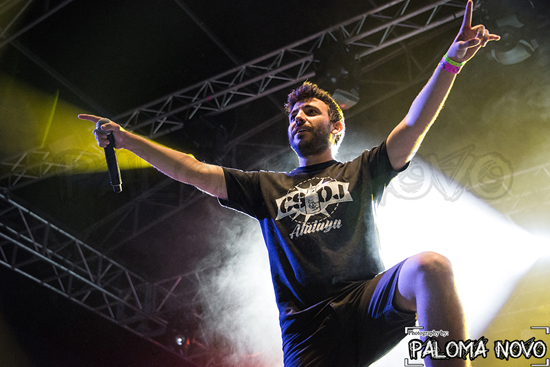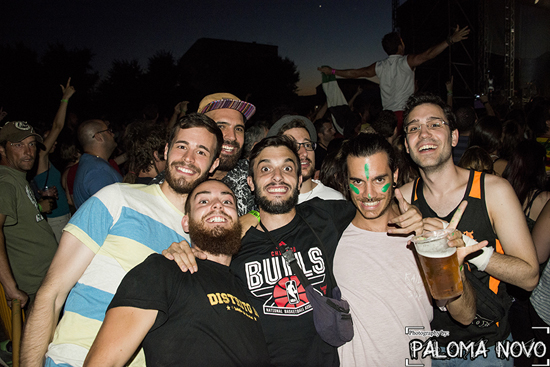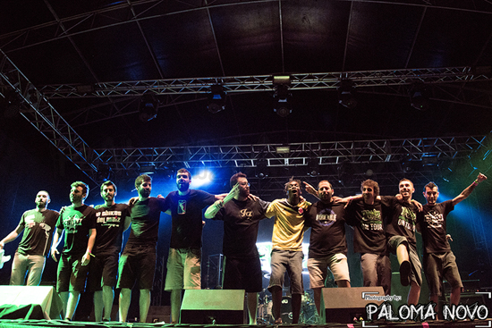 Con un cansancio propio de los bailoteos que llevábamos, empieza el penúltimo grupo Bongo Botrako, Tarragona repite representante, con los creadores del Punk/Parranda, para haceros una idea: Una mezcla de rock calimotxero, regado con un reggae y un punk vertiginoso. Como buena muestra es el comienzo del directo con “Camínate”, “Mundo Nuevo” y los sonidos balcánicos que nos regalan con “Gira la vida” un sin dios, un no parar de bailar, así son los bongo botrako, como bien dice su nombre, el cual viene de una pócima que aquel que la bebía tenía el extraño don de ver siempre la parte positiva de todos sus problemas y arreglarlos (además de las psicotrópicas). Claro, por eso nos gustan tanto, y más cuando suena “Invierno”, “Punk Parranda”, “Bonobo” esos ritmos denotan que los catalanes, han mamado calle y a eso huele su música, a alegría y la libertad que se respira en cualquier calle. Después del anuncio del delicado estado de salud de la voz de Uri Giné, mas lejos de venirse abajo, el septeto despega, con “Libre” y con una trepidante versión del “Volare” ¡Visça la rumba catalana!!!!. Y más lejos que saliera el sol suena “Todos los días sale el sol”, si amigos la del Chipirón, la del imperdible que se pierde… Como podía faltar, llegando al primer final. A la vuelta de los bises no queda tiempo, volvemos al reggae, pero ahora el jamaicano con “Give us your love” y para acabar un homenaje a las mujeres que revolucionaron el mundo, brutal “Revoltosa” ya así acaban estos chicos, haciéndonos recordar la imagen de lo preciosa que se pone, cualquier mujer, cuando grita libertad. |