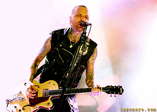 A menudo los músicos se quejan de los cerrados de mente que pueden llegar a ser sus seguidores. Y en ocasiones tienen razón. También hay casos en los que los propios miembros del grupo no se ponen de acuerdo en que dirección seguir, y acaban separándose por las tópicas “Diferencias musicales”, o llegando a un pacto para dar rienda suelta a sus ansias creativas a través de proyectos paralelos. Parece ser que fue esa la razón por la que los suecos Backyard Babies decidieron pegarse un descanso de cinco años, con el objetivo de poder reconducir su esencia creativa, recuperando todas esas señas de identidad perdidas por el camino, su peculiar ambivalencia sonora y ese porte macarra con el que cautivaron en sus orígenes; y crear una colección de canciones en donde la honestidad se convierta en su principal baluarte, invirtiendo todo el tiempo y esfuerzo necesario. Es difícil controlar las emociones y el estado de ánimo durante un concierto en la que los músicos tocan cada una de las notas como si les fuera la vida en ello. Dregen, Nicke Borg, Johan Blomqvist y Peder Carlsson cobraron total libertad para campar a sus anchas en Barcelona. La mecha ardió a toda velocidad nada más comenzar con “Th1rte3n or Nothing“, una de las canciones que conforman su último artefacto sonoro, “Four By Four”, glam rock de alto voltaje con ráfagas de frescura que te airean el cuerpo, mostrando un fabuloso estado de gracia, al nivel de sus mejores tiempos. Una consistencia sonora bien nutrida de intensidades, bajo una ejecución impecable y es que empujados por sus propias ganas y dominando el formato de mediano escenario, no dejaron lugar a las medias tintas, dedicándose en cuerpo y alma a una proliferación de sentimientos que no tienen nada que ver con la lógica, consiguiendo carambolas de feedback cuando los riffs atléticos de su portentoso guitarrista Dregen se abrían paso de manera notoria para marcar un ritmo frenético y asociarse al gancho melódico vocal de su compañero Nicke Borg, sobretodo en sus emblemáticas composiciones, “Highlights”, “Brand New Hate”, “Dysfunctional Professional”; “Nomadic” o “Minus Celsius”. |