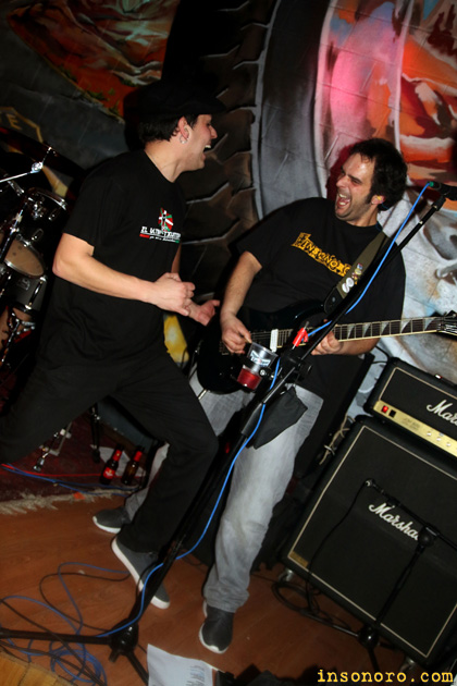 Ángel, Rodrigo, Pany, Borja y Raúl defendieron sobre la acogedora tarima sus originales canciones. Canciones de letras picantes y encasilladas dentro del punk rock lúdico festivo, un género en el que el cachondeo y la música van de la mano.