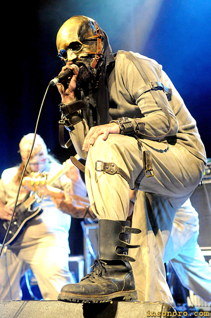 Última jornada de la modalidad metal del Villa de Bilbao, viernes 21 de octubre, directos a la final, en una nueva jornada con granes participantes que últimamente estamos viendo en esta modalidad, por un lado, estaban la banda de Zaragoza Warg y por otro la de Albacete Insaniam, estos últimos con un espectáculo visual, inquietante, oscuro y tenebroso, posiblemente pocas veces hayamos visto algo igual en el Villa de Bilbao. Los primeros en subirse al escenario, Warg, formación de cinco miembros con dos discos a sus espaldas, “Back From The Shadows” y “The Dusk Of Men”, salieron a muerte, con una actitud pocas veces vista en este concurso, sin duda no pasaron desapercibidos y su trabajo se puede asemejar al que realiza más de una banda internacional que todos idolatramos. Movimientos, sus dos guitarristas y bajistas de rodillas en varias ocasiones, nos ponían muecas constantemente, nos sacaban la lengua, los fotógrafos encantados. Cinco temas les dieron tiempo a tocar, con una música que puede ir desde el heavy metal más tradicional al trash metal, pasando por el viking metal o el más gutural y oscuro que te puedas echar a la cara. Están en buena forma y etiquetarlos sería un error, tienen un personal sonido con variedad dentro del género. “Wargs On The Horizon” y “Loki” fueron los primeros temas, los unieron sin concesión para que salieran veloces, mientras tanto comprobábamos con profesionalidad sobre las tablas, con un objetivo claro, estar en la final sin contemplaciones, y sinceramente es lo que nosotros deseamos, pero al final el que manda es el jurado. Su cantante, Javier Gregorio, en todo momento se mostró comunicativo, dando las gracias a la organización y al público que se acercó a verles y a poyarles y sobre todo al metal. “Ancient Times” seguía con los terrenos más oscuros y guturales, un corte que se encuentra dentro de su último disco de estudio, también fue dedicada a su madre que se encontraba allí con ellos, ya que había nacido a Bilbao, y muchos amigos y familiares les arroparon que viajaron con ellos. “As The Warg Arise” sirvió como escucha para subir los puños en alto, a un ritmo brutal de su batería que pasó rápidamente al trash metal melódico con unos estribillos aptos de recoger haciendo partícipes al público. Y llegamos al final con “Time Will Hide”, allí Javier se puso un sombrero de copa para meterse en el personaje de Jack el Destripador, un corte con bríos de ópera rock, poniendo toda la carne en el asador con esos grandes registros vocales. Concierto dinámico y divertido, tanto para ellos como para el público en general, una manera ejemplar de hacernos disfrutar y participar. |