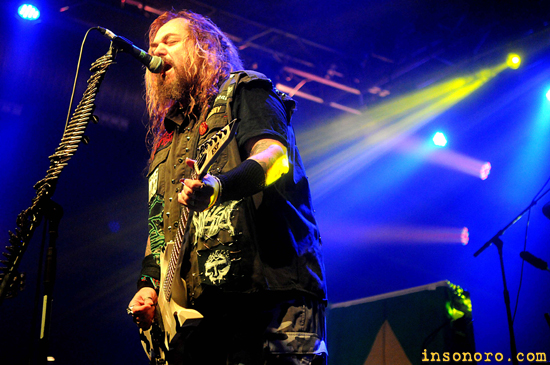 Media hora de cambios entre que quitaban la batería de Crisix y preparaban el backline de los hermanos Cavalera, mientras se respiraba una atmósfera inclasificable, rodeados de gente de otros lugares que se habían acercado para la ocasión, ya sea de Francia, Asturias, La Rioja o los más cercanos, Cantabria o Gipuzkoa. Max e Iggor, hermanos de sangre, siguen en pie de guerra sin cicatrizar las heridas con sus ex compañeros Andreas Kisser o Paulo, tienen cuentas pendientes, pero sinceramente, siguen viviendo de unas rentas que tienen fecha de caducidad, sus otros proyectos, Soulfly o Cavalera Consiracy, no les han servido para seguir creciendo, sino que se han estancado, ya sea musicalmente hablando como en temas de composición, por eso, siempre que pueden, tiran del pasado, de Sepultura, un arma eficaz que siempre cumple, en sus conciertos con dichas bandas, aparecen 6, 7 canciones de los Sepultura, y eso lo dice todo. Como compañeros de escenario estaban Jhony Chow al bajo y Marc Rizzo a la guitarra de 7 cuerdas, este último conservando cierto protagonismo para salvar las limitaciones del propio Max Cavalera. El concierto comenzó como no podía ser de otra forma con el tema que abre el disco, “Roots Bloody Roots” y con él la sala se vino abajo, además Max dejó al público cantarla, un momentazo para empezar la noche, luego se fueron rápidamente a los tribales con “Attitude”, saliendo a escena un raro artilugio a modo arpa que intensificaba esos sonidos. “Cut Throat” y “Ratamahatta”, también llenos de percusiones y fiesta por todos los lados, también vimos a un Max que no estaba al cien por cien ni cómodo en registros, teniendo que parar para coger aire entre tema y tema, además de mostrar el micro al público en repetidas ocasiones, un truco que todos ya nos sabemos, y es que nos da la sensación que esos kilos de más repercuten negativamente sobre su estado sobre el escenario. Eso sí, Max siempre estuvo participativo y con la cara sonriente, indicando en más de una ocasión que quería ver pogos y circles spit, y así fue, el público estaba totalmente caliente, es evidente que hemos crecido con ellos. Más temas iban llegando sin descanso, con los registros de voz más correosos y vivos, hablamos de “Straighthate” o “Spit”, otro de los temas que no pasaron desapercibidos del disco, y en el ecuador del concierto, disfrutamos de “Lookaway” y “Dusted”. |