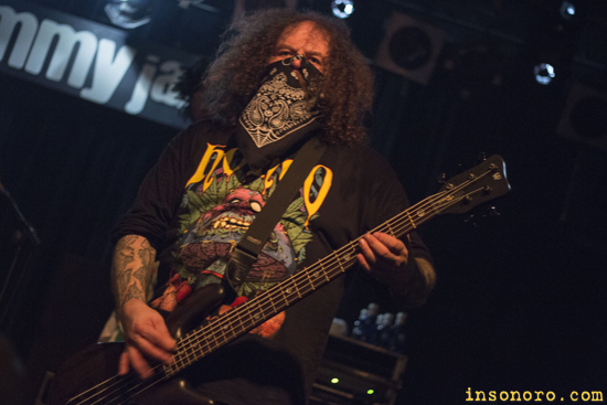 Un sopapo directo con esos rápidos y veloces cambios de ritmo, con una pegada fantástica de batería, bajo distorsionado y riffs rasgados y punzantes, un equilibrio de sonidos estridentes que pueden ir desde el grind core hasta el death metal, groove metal incluso hardcore old school tipo a bandas como D.R.I., Municipal Wasted o Terror. 19 temas interpretaron, iniciando la contienda con “Jugullar Bells” de su disco “Bloodola”, con un primer bloque de tres canciones que dieron impulso a presentar los nuevos temas de su absoluta novedad llamada “Grind Capital”, entre ellas eligieron como representación a “DDT” (Deporting Donald Trump), dirigida al nuevo presidente americano, “Let's Go Let's Bomb”, “Coprofunding” sobre los procesos de crowfunding o “Ahmadinejazz” criticando ese género de música, seguramente referido a la cita anual que hay en Vitoria sobre el Jazz. “Denak Erredun” pasó en un abrir y cerrar de ojos, la única en euskera, siempre acelerada en directo, también rescataron alguno de sus discos pasados, como “I’m the monster, you’re the lunch” de su primera grabación, y ya para el final, un pulso con “Basque Streel Boys”, un himno con ese estribillo que funciona a las mil maravillas en directo, luego vino “The Kill” de Napalm Death, que seguramente a Shane Embury (miembro de Brujería y bajista de los Napalm), que esa noche estaba allí, le resultaría conocida, y para poner la puntilla, “Comandante”, un grito bestial al anunciarla que nos sacó nuestra sonrisa, y más al ver que tenían la sala llena ante sus pies, un regalo anticipado del Olentzero. |