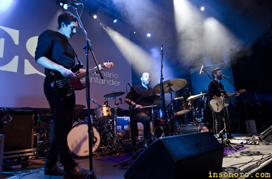 Y luego llegó León Benavente, para acabar la faena que había comenzado conmigo en el Santander Music el verano pasado. En ese festival, me dejaron cuando menos descolocada, y despertaron en mí una voraz curiosidad, además de sentimientos ambivalentes. Había canciones que me gustaban y otras que no me decían demasiado (nunca había oído nada hasta que les vi en la época estival). Antes de verles de nuevo en el Escenario Santander, esa noche, ya había escuchado sus discos unas cuantas veces, y montaron tal espectáculo que no pude más que rendirme a la evidencia. Lo primero que quiero comentar, es que me parecen brutales las letras de este grupo. Soy de la opinión de que es importantísimo el cómo se dicen las cosas, y la forma en la que lo hacen León Benavente me parece sublime. Son mordaces, irónicos, directos, inconformistas… ¡¡Poesía del Siglo XXI sólo apta para rebeldes de espíritu!!. Por otro lado, la puesta en escena es apabullante. Tienen muchísima energía y transmiten emociones y sentimientos de una forma apasionada y desgarradora. Al verles es cómo si te estuvieran cantando personalmente las canciones, como si se dirigiesen a ti. Saben conectar con el público a la perfección. Y dieron un concierto dinámico, y estuvieron en lo más alto de la cima durante toda su actuación, dejándonos sin tiempo para respirar y sin un segundo de descanso. ¡Fue un gran show!. Es increíble que tan sólo tengan dos discos y un EP, y que estos trabajos estén repletos de auténticas joyas. Te puede gustar más una u otra canción, por los ritmos o por las temáticas, pero la mayoría de ellas son como para quitarse el sombrero. En el Escenario Santander disfrutamos de “Tipo D”, “California”, “Ánimo valiente”, “Revolución”, “Gloria”… Y así podríamos seguir dando títulos hasta pasar de la quincena (algo que no haré por ser muy absurdo). El remate vino con “Ser brigada”. Me parece muy interesante hablar de sensaciones, más que plasmar la lista literal de los temas. Y las principales fueron: Energía, contundencia, aplomo, solidez, entusiasmo y felicidad. León Benavente dieron una gran lección aquella noche en el Escenario Santander. Espero que coincidamos pronto. |