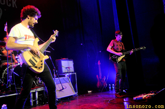 Y la última banda de la noche fueron los barceloneses Crocanti, con una gran estampida de público que muchos fueron a ver íntegramente a Los Bengala. Los de Barcelona están influenciados por Queens Of The Stone Age o Thrice, dejándonos una colección de ocho temas alimentados en un flujo melódico denso, con un sonido de bajo y riffs de guitarra marca de la casa. Abrieron con “Nova”, algo de rock independiente cercano a New York, tipo Sonic Younth, luego se presentaron entre tema y tema mientras les daba tiempo a afinar los instrumentos. Recobrando el sentido por los estribillos en “Prey”, bajando revoluciones en “Neddle” y volviendo a su origen stones en “Sun Cars”, haciendo un final del concierto denso y oscuro con “Nightmares” y “Addiction”. |