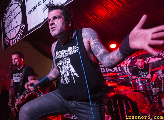 Y la velada... la cerraron “las ratas”. Como suelen hacer siempre, volcaron a la gente con su ceremonia. Cada detonación se cantó y se bailó por todos los rincones de La Cueva. Y es que, Palencia tenía ganas de Rat-zinger porque tras alguna intentona previa fallida por fin esa noche el cuarteto bilbaíno estaba allí rezando sus oraciones. Un particular peregrinaje iniciado a la orden de “Dios Salve A Ronnie Biggs” y sentenciado con su habitual “9mm”. Actualmente Rat-zinger se encuentra preparando su sexto trabajo de estudio, y como muestra nos presentaron su tema adelanto “Santa Calavera”, que aún no sabemos si de verdad supone una nueva era, pero sí afirmamos que sus cuatro jinetes siguen metiendo caña de la buena. Vamos, en resumen, que Podri (voz), Javi (guitarra), Pinky (bajo) y Xabi (batería) siguen su camino sumando melodías destructoras y letras claras y sin tapujos. Sabiendo esto parten con una ligera ventaja ante los que desconocemos el resto de sus nuevas creaciones. En Insonoro cada vez se nos hace más difícil mencionar qué es lo que destaca más en los conciertos de Rat-zinger, quitando claro está las novedades o acciones inusuales. Disfrutamos por igual con todos los temas y vemos que el resto de asistentes también lo hace. Y con eso, decimos bastante. Es una gozada cuando ves a un grupo y todas las canciones contagian tus emociones, sin la necesidad de esperar la llegada de alguna en concreto. Pero, para que os hagáis una idea del “setlist” ofrecido citaré una pieza de cada disco publicado tocada ese día en La Cueva: “Mi Navaja” (Cartas Al Vaticano, 2011), “Dicen Que Soy” (Crónicas De La Destrucción, 2012), “Patria” (Rock`n`Roll Para Hijos de Perra, 2014"), “Chivo Loco" (No Habrá Piedad Para Nadie. Vol.1, 2015) y “Únete Al Terror” (Larga Vida Al Infierno, 2016). Además, el concierto tuvo algunas colaboraciones. Gartxot (The Guilty Brigade) se subió al escenario para entonar los versos de “El Kaos En Mi”, Witxin (Salida de Emergencia) hizo lo propio en los temas “Rock`n`Roll Para Hijos de Perra” y “No Habrá Piedad Para Nadie”, y Gustavo (Los Kebraos -Tributo a Cicatriz) puso su granito de arena en “Tenéis Speed?”. Rat-zinger tiene una tropa fiel que les sigue allá donde se puede, y en cada localidad que tocan saca a una buena masa de sus casas. El día que este grupo toque en Hamelín, el flautista se queda sin seguidores. |