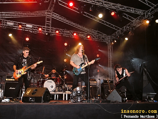 Sin dejar su actual disco, siguieron con la pegadiza “Another love has gone”, que gustó mucho, con ese sonido que da frescura al clásico Hard rock sin sonar caduco, tras lo que nos saludaron en un más que decente castellano y se presentaron, antes de dar paso “Leave me alone”, también de su actual disco, con la que consiguieron ganarse aun más a la gente que iba dando a la plaza calor. Orgullosos de abrir esta gira de Robin Beck en España, siguieron con “Inside your head”, el primer recuerdo a su primer disco, con un sonido más clásico, mientras los músicos en todo momento buscaban nuestra complicidad y la implicación en su concierto. De vuelta a su actual disco, fue el turno del potente “Don't need nobody”, otro gran tema de esta fantástica banda, antes de despedirse de todos los presentes con “Over the Rainbow”, de su anterior obra, en la que fueron presentando a los músicos y con los que dieron por concluida su media hora de actuación, dejando a la gente más que satisfecha. Pese a lo breve de la actuación y el desconocimiento generalizado de los presentes, Grey Attack fue una banda que gustó mucho a base de canciones, al mismo tiempo potentes y pegadizas, y buscando la conexión con la gente en todo momento, recurriendo para ello al castellano en varias partes del evento. Banda muy a tener en cuenta. www.greyattack.de |