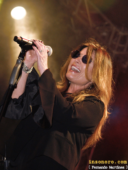 Y llegó el momento por todos esperados, la canción que la catapulto a la fama osea “First time”, esa canción que nos descubrió a la artista en el año 1988 gracias a ese famoso anuncio de un refresco y que estuvo integrado también en el segundo disco de la artista editado el siguiente año; ni que decir tiene que este fue el momento más emotivo de la noche, con muchos recuerdos entre los que recordábamos esta canción e incluso la bailábamos en aquellos lentos con la chica que nos gustaba. Después de este momento de nostalgia, llegó el turno de volver a discos más recientes como ese “The great escape”, del 2011, en donde estaba incluida el tema “The one”, en la que nos siguieron transmitiendo el buen rollo que tienen entre ellos sobre las tablas, antes de seguir con la potente “Love lies”, de su disco del 2007, llamado “Livin´ on a dream” y es que la protagonista de la velada tienen muchas canciones buenas en todos sus discos. Llegaba el final de concierto y era el turno de la sensacional “Hide your heart” que los Kiss hicieron para Bonnie Tyler y que Robin Beck publicó en su famosísimo segundo disco, en la que buscó y consiguió interactuar con un público que se dejó la voz a conciencia ya que se acercaba el termino del mismo, con un espectacular duelo de guitaras como punto final. Y así, tras hora y media, terminaba la actuación de Robin Beck y su banda, sin bises, pese a la insistencia de los presentes, eso sí, no fue por ganas de ella, que salió a disculparse diciendo que por ella hubieran tocado más pero que no les dejaban; y es lo que tiene hacer un concierto en pleno centro urbano un día laboral. Robin Beck dio un conciertazo, de esos que se te quedan grabados, mostrándose siempre muy cercana y dialogando mucho con la gente; pena de no saber más de inglés para haberme enterado algo más. Cuenta con una magnifica banda que interpreta los temas con gran calidad y dotando a las canciones de más fuerza de las que tenían en las grabaciones originales. Por cierto, como muchos de los presentes, me di cuenta que conocía muchos más temas de Robin Beck de los que pensaba, por lo que habrá que hacer una revisión de su discografía en cuanto me sea posible. www.robinbeckrocks.com Y así marché de la Plaza Porticada de Santander contento por la especial noche vivida que hizo que se me pasase el mosqueo por el tema de los horarios, quedando ya a esas horas muy poca gente y es que no olvidemos que era lunes y al día siguiente tocaba madrugar. Ojala se sigan trayendo grandes artistas como Robin Beck a Cantabria y si encima son gratis pues mejor. |