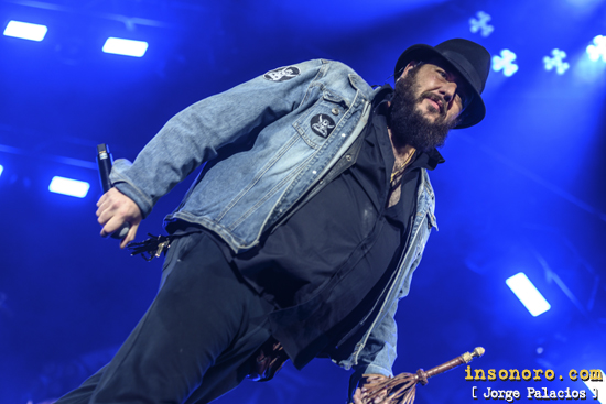 Era el turno de regresar a su nuevo disco con “Un hierro sin domar", otro gran tema y es que este es un disco que no defrauda para nada a los seguidores de la banda, tras el que Kutxi nos dijo que se nos estaba quedando cara de cántabros y dejarnos, como él dijo, con un cantante de verdad, cediéndole la parte vocal a Piñas, bajista de la banda, para interpretar “Pecadores”, el corte que cierra su actual obra, demostrando la fuerza que tiene su voz, algo que algunos ya hemos podido comprobar en su otro grupo Malaputa. Sin perder un segundo y aun con Piñas a la voz, era el turno de una de su disco debut, “La patera” de 1999, siendo la misma “Trasegando”, una de las preferidas del público como se pudo observar a tenor de la reacción ante la misma, para, ya con Kutxi , que nos dijo que había traído su propio cenicero, dando un cigarrillo a uno de los presentes, continuar con por “Jindama”, un temazo de su actual disco y en donde al vocalista se le cayó el micrófono al foso, aunque sin más consecuencias. Era el momento de relajar un poco el evento y para ello recurrieron a “Pájaros viejos”, un bello tema que está presente también en su reciente disco y que me gustó mucho, para seguir con la esperada “La Luna me sabe a poco”, de su tercer disco, y que volvió a hacer saltar a la gente, totalmente enloquecida con el concierto que estaban disfrutando. Tras preguntarnos de nuevo que si seguían, con afirmativa respuesta, y tras asegurarnos que eran los Marea de verdad, no un grupo tributo, era el turno de un solo de Kolibrí que nos introdujo en “Ocho mares”, un nuevo tema de “El azogue”, con un gran trabajo de Kolibrí, aunque sin desmerecer la gran labor de toda la banda, siendo Piñas el que dio paso a “En tu agujero”, de su tercer disco y que, como era de esperar, fue muy cantada por la gente, entre los cuales me incluyo. Avanzamos a su cuarto disco con “La rueca”, el tema que le abría, con Kutxi tirando monedas en la parte en la que canta eso de “me bastan 40 duros de felicidad”, otro de los temas más aclamados, como también lo sería ese temazo que es “Barniz”, la canción que iniciaba su segunda obra, tras la que la banda se marcho temporalmente del escenario. Al regresar pidieron un aplauso para El Desván que les había acompañado y que estaban entre el público y diciéndonos que según lo que aplaudiésemos tocarían más o menos canciones, agradeciéndonos el estar pendientes del concierto y no grabando con los móviles, con Kutxi definiendo a Alén como un héroe, a Cesar como el jefe, a Piñas como el rock y a Kolibri como el maestro, antes de sacar a toda la gente que les acompaña en la gira, o al menos a los que podían dejar su puesto, para que fuesen aplaudidos por todos los presentes como reconocimiento a su labor. |