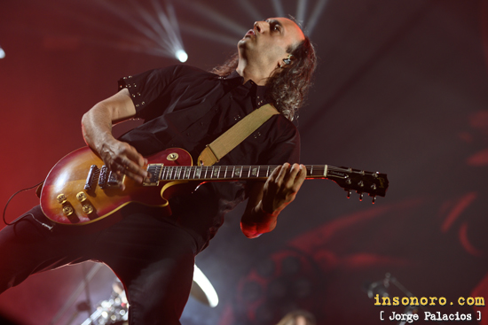 Tras haber hecho tiempo y aun con cierto mosqueo por lo anteriormente relatado, ya pudimos acceder al local para contemplar la magnífica entrada que había en el recinto santanderino, con muchas gente conocida y de diferentes edades y es que esta banda ha trascendido diferentes generaciones y abarca a un amplio abanico de seguidores de la música. Y con bastante puntualidad sobre la hora prevista, empezó a sonar una intro y subió Alén que se situó tras la batería y dando inicio, ya con todos los Marea sobre las tablas, a “En las encías”, tema que también abre su nuevo disco, el anteriormente mencionado “El azogue”, con la gente expectante y Kutxi saludándonos a medio canción, para seguir con el otro single que ha sido publicado de este disco, es decir “El temblor”, corte muy coreado y que acabó de enganchar a todo el público. Con un impactante juego de luces durante toda la velada, nos llevaron a su anterior “En mi hambre mando yo” de hace 8 años con “La majada”, en donde Kolibrí nos deleitó con un gran solo de guitarra, tras el que Kutxi nos saludó y recordó lo mucho que hacía que no tocaban allí, diciendo que estábamos más viejos no como ellos y que había que disfrutarlo por si no se volvía a repetir, antes de llevarnos a “La noche de viernes santo”, uno de los temas que primero me ha entrado de su nuevo disco, que, como estáis viendo tuvo mucho peso en su repertorio, demostrando que Marea no es una banda que viva de rentas. Sin embargo, hay que reconocer que la mayoría del público está deseando escuchar esos temas más conocidos de la banda como “Mierda y cuchara”, ese corte que estaba presente en su quinto disco “las aceras están llenas de piojos” del 2007 que hizo a la gente volverse loca y donde César y Kolibrí coparon el centro del escenario, para seguir con “Muchas lanzas”, que dijo que son las que se han clavado en su pecho, otra pieza de su más reciente disco, que tan buena acogida está teniendo. Unida a la anterior por la guitarra de Kolibrí llegó uno de esos temas siempre muy esperado en sus conciertos que es “Manuela canta saetas”, de su tercer disco “Besos de Perro” del 2002, que puso a cantar a todo el palacio de deportes, tras la que Kutxi empezó a vacilar con que si estaban molestando se iban, con todo el mundo gritando que no, antes de anunciarnos “una canción con la que muchos de vosotros os disteis vuestro primer beso”, siendo ésta “Corazón de mimbre”, de ese discazo llamado “Revolcón” del 2000 y que provocó la locura total entre los presentes. De vuelta a su quinto disco preguntaron que por donde estaba Evaristo, que colaboraba en el siguiente tema de su disco del 2007, siendo éste “Mil quilates”, en el que Kutxi tuvo que cantar con la particular voz del de Agurain, antes de motivarnos para provocar que se cayese la ballena, termino con el que en Cantabria se conoce al Palacio de los Deportes, y casi lo consiguen cuando todo el mundo se puso a botar con “Que se joda el viento”, el corte que cerraba su disco “28.000 puñaladas” del 2004, con un gran duelo de guitarra entre César y Kolibrí. |