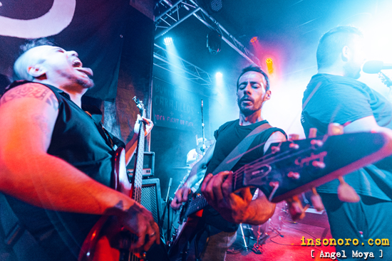 El cambio de una banda a otra es súper rápido, hay que tener en cuenta que muchos viajamos en transporte público y tenemos que amoldarnos a sus horas. Los asistentes a esta mega noche de música están preparados para el plato fuerte. No ha pasado ni una cerveza cuando podemos escuchar la intro de Los A Tercio Pelao, saltan al escenario y empieza a sonar el punk más querido de toda Valencia. Este segundo plato es grande y jugoso, Alvalitro es la primera canción que los Benimacleteros nos regalan, seguidamente para dar la sorpresa y presentar un tema nuevo, Politoxikomano, los embajadores del Punk valenciano saben hacer muy bien las cosas, es notable su esfuerzo y sus horas en el local preparando el espectáculo. Muchos teníamos ganas de los A Tercio, muchos necesitabamos nuestra Dosis y sabiamos donde podíamos encontrarla. Encontramos lo queriamos, después de la Dosis necesitamos a nuestra Kompañera, canción que en el CD de A Tercio podemos escuchar con otra de las bandas de punk más reconocidas de la ciudad, Fatiga. |