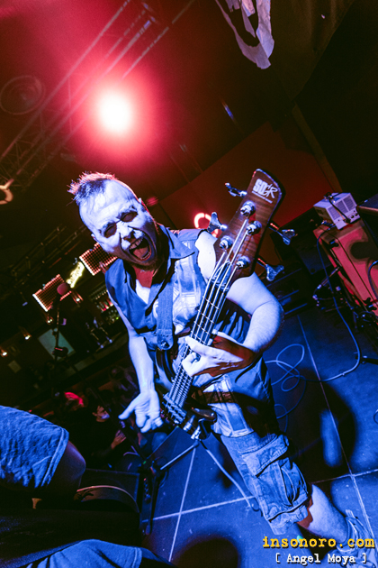 Con actitud de guerrero vemos a Paco Ballester aporreando el bajo con una energía desbordante, la cual se contagia al verlo en movimiento. Encontramos el mismo tipo de energía pero esta vez brotando desde el fondo del escenario, esta vez tenemos a Paco Muñoz como un Poseso descargando a golpe de baquetas. En todo momento del concierto es mirar a la batería y encontrarse con esta bestia haciendo su trabajo, sus caras, gestos... En esta banda todos rezuman energía y poder, saben controlarlo y entregarlo al público para su disfrute. Me estoy volviendo loco, un gozo inmenso me invade, una banda super potente con un Rock personal y con gusto. Esto me huele a un pacto con Satanás. Tal vez no sea un trato con el diablo, la verdad que el talento desborda hoy la 16 Toneladas. Ahora, están acabando los Burninhell' Carajillos y con la cerveza en alto brindo por volver a encontrarme con ellos muy pronto. |