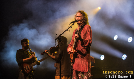 Fueron 3 horas de concierto. La primer hora y media interpretó canciones de los dos primeros discos, canciones como “Guerrero”, “Contra todo”… intercalando algunas míticas de Extremoduro (“Si te vas” “Golfa”…) dando paso luego a un receso de 30 minutos para que la gente pudiese “hacer lo que le diese la gana”, eso sí, ”sin que les vieran”, como siempre dice él… A la vuelta ejecutó su último disco “Mayeutica” de principio a fin; 45 minutos de derroche de sonido y luces para acabar con cuatro temas de Extremoduro (“Standby”, ”La verdadera puerta de atrás”, “Rozar contigo” , poniendo la guinda final con “Ama, Ama y ensancha el Alma”. Tres horas de completo disfrute, perfecto de voz, animado y entregado y con el pedazo elenco de músicos que le acompañan, fue una gran noche para disfrutar de su talento. La gente salió más que satisfecha. GRANDE ROBE!!!! |