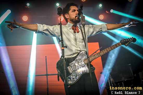 Fito es un animal de escenario, a el si le hace falta una jaula por que es una fiera hambrienta y Xavi lo sabe, al estar “preso” del teclado además de la guitarra, le suma esa sensación de “cualquiera coge mas escenario, que este tipo me arrolla”, y es que al bueno de Fito se le queda pequeño el escenario de La Riviera con tanta carrera e interpretación, y eso se agradece mucho pro el show cobra una fuerza y energía indescriptible, aunque también tenga esos momentos de “bajón” como el mismo comenta con la parte acústica y tranquila de la noche que, no os penséis que sobra, para nada, menudo regalazo poder escuchar por fin en directo “Invisible” acompañados nuevamente de Marino. Y no fueron los únicos estrenos de la noche, tuvimos la suerte de escuchar “Las Palabras” su nuevo single, y un tema que aun no ha visto la luz dedicada a su tierra, “Campo Grande” con el que nos solicitó, por favor, el respeto de no grabarlo con el móvil porque ya se había llevado la charla por cantar un tema antes de publicarlo. |