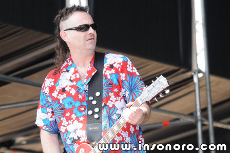 Otras de las grandes bandas triunfadoras de esta jornada fueron los británicos Toy Dolls, que incitaron a la basca, gesticulando con su habitual ironía. Ataviados con sus trajes de gala y esos anteojos típicos de un cotillón, y sin perder apenas tiempo, nos fueron sumergiendo en su mundo. Un punk a todo trapo, con unas letras de autentica chaladura, como “Nellie The Elephant”, “Glenda”, “Barry The Roofer”… En el otro escenario Tabletom recaló un menor público del deseado. Con mucha seriedad y concienciados que el conseguir un alto numero de seguidores, tras su vuelta a la actividad musical, no va ser un camino de rosas, cuajaron una actuación sobresaliente, basada mayormente en la acertada fusión de sonidos Jazz-Rock-Blues y unos textos adaptados de poesía malagueña. A mi personalmente me encantaron y creo que merecen, por su clase y talento, ocupar un lugar más alto dentro de la escena. ¡El tiempo, espero, me dará la razón! |