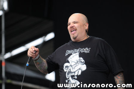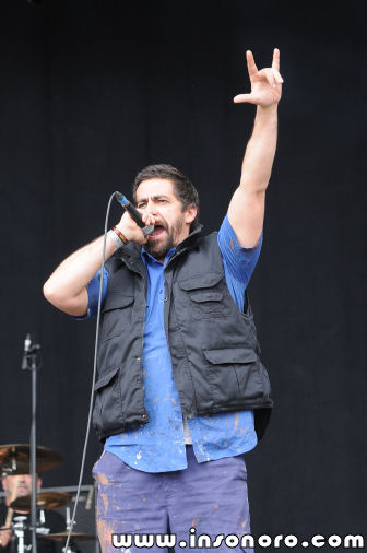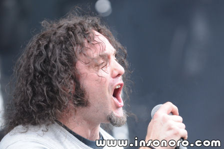 Los brasileños Ratos De Porao cumplieron con todo lo que mundo esperaba. Un directo muy hardcore, lleno de adrenalina. Todo el peso de la actuación, recayó sobre la figura del cantante, el Gordo, quien estuvo incombustible desde el inicio hasta el fin, apareció en escena ataviado con una capucha de luchador. No debemos olvidarnos del gran papel que desempeñó Juninho, que se pegó una paliza de hordago, con espectaculares saltos y movimientos diversos con su bajo. Con ellos, sin duda, llegó la locura y el salvajismo a gran parte del público, sobretodo cuando interpretaron sus grandes clásicos "Crucificados Pelo Sistema", "Pobreza/FMI". ¡Poco nos duro el buen tiempo! El cielo se cubrió de nubes y al rato comenzó una lluvia fina toca pelotas, que duró lo suficiente para enfriar los ánimos del respetable. Muchos decidieron hacer un parón y los valientes, como nosotros, teníamos que tomar la primera decisión de la tarde, ver a los portugueses Fonzie o los veteranos Triana. Al final optamos por ver un rato de ambos. Los primeros no los conocía y me agradaron por su gran actitud y derroche físico. ¡Lástima que no contarán con un mayor público! |