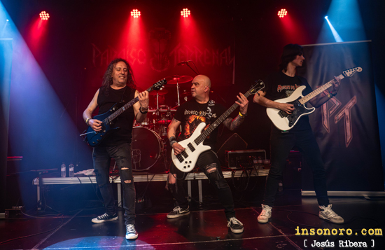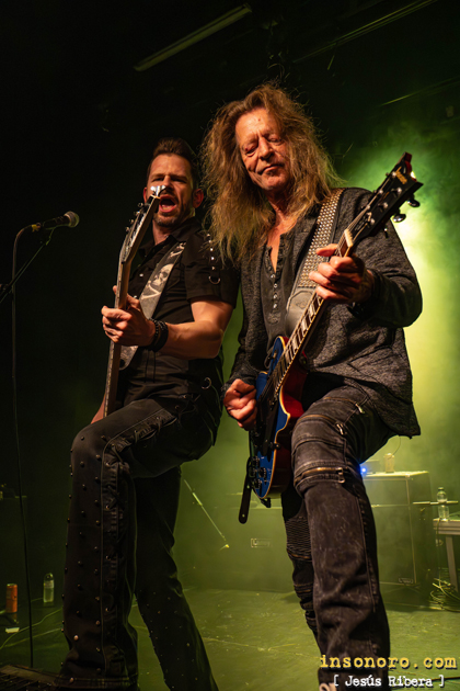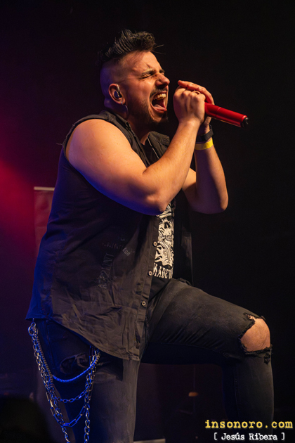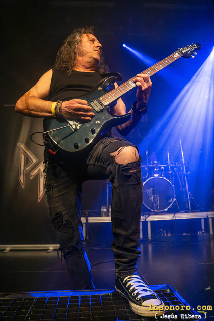 Este chaval viene pisando muy fuerte, como es habitual en la nueva hornada de guitarristas españoles, que, con un grandísimo talento y gran virtuosismo, se compagina a la perfección, con otro de los grandes maestros de Las seis cuerdas Alberto del Olmo (Chivi), quien en todo momento derrochó calidad, muchísima técnica y gran profesionalidad. Con “Viste de piel” y “Quiero ser”, la base rítmica a cargo de Roberto Rodríguez al bajo y la apisonadora Ufo Tabares a la batería destacaban sobremanera, aportando un sonido contundente que, aun con problemas técnicos, supieron solventar con muchísima profesionalidad. En el meridiano de su actuación, la banda apostó por dos de sus grandes temas: “Se avecina tormenta” y “Condenado”. Heavy metal épico, directo y sin concesiones son las características de estos dos temas, y es que los dos discos de esta banda Prisionero y Fuego en tu interior, son oro puro del metal patrio, y así lo demuestran en sus directos. |