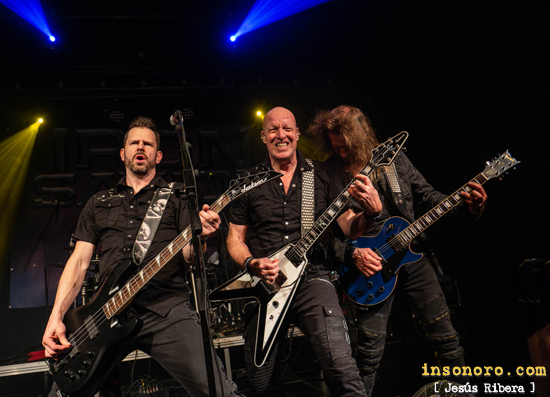 ¡Chapeau! Por la organización, que supo elegir excelentemente las bandas que acompañaron a Iron Savior y que, sin duda, estuvieron a la altura, dejándonos on fire de cara a la actuación de los alemanes. Cómo motos estábamos, expectantes y con muchas ganas de recibir a los alemanes Iron Savior en su gira de celebración de su trigésimo aniversario. Que, con furia y entrega, subieron al escenario donostiarra, con Piet Sielck encabezando la formación con la que lleva desde que la fundó junto a Kai Hansen en Hamburgo en 1996, y que desde entonces no han parado de rodar por medio mundo. “Way on the Blade” fue la primera en caer; algo no iba bien, la guitarra de Piet no sonaba, él a lo suyo, hasta que por fin se dieron cuenta y retornaron desde el principio el tema, aún con más furia y dedicación que en el primer intento, dejándonos un potentísimo inicio. El sonido no mejoraba con “Roaring Thunder”, el siguiente tema en caer. La banda, muy profesional, continuaba sus labores, con Joachim Küstner acompañando a Piet en las guitarras, demostrando por qué es un fijo en el puesto desde hace ya más de veinticinco años; y es que el hombre es sinónimo de eficacia y gran calidad. |