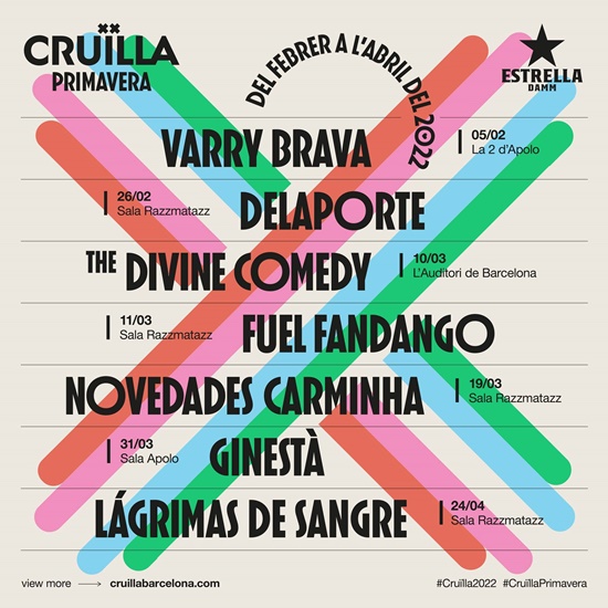 Primeros confirmados del Cruïlla de Primavera 2022: Varry Brava, Delaporte, The Divine Comedy, Fuel Fandango, Novedades Carminha, Ginestà , Lágrimas de Sangre. Entradas ya a la venta
