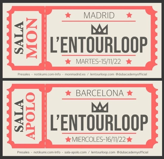 Los franceses L´Entourloop visitarán Madrid, Barcelona y Zaragoza este mes, su música, que se alimenta del ragga y hip hop, se dejará oir en la Sala Mon de Madrid el 15 de noviembre, Sala Apolo de Barcelona el 15, y ya el 26 de noviembre, regresarán para tocar en la Sala López de Zaragoza.