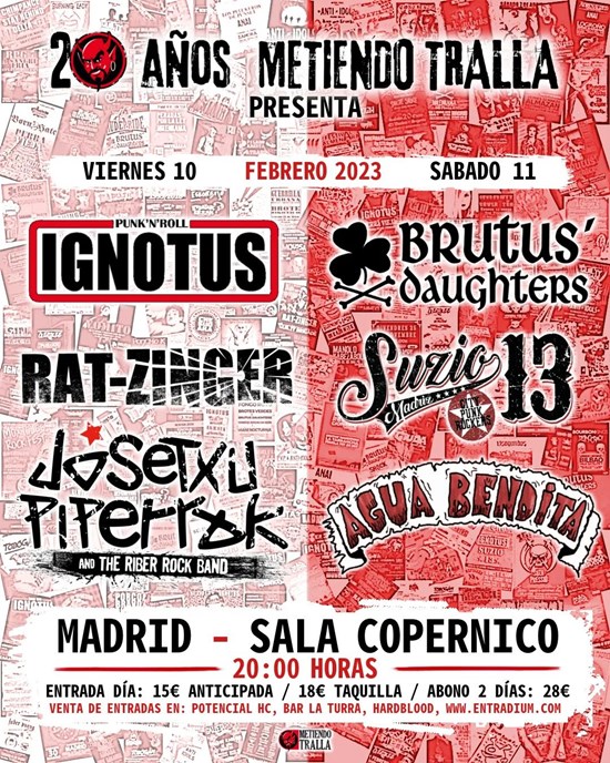 XX Aniversario de Metiendo Tralla, la celebración será en febrero durante dos días, 10 y 11 en la Sala Copérnico de Madrid con bandas de la talla de Ignotus o Brutus´ Daughters entre otros. Entradas en: www.entradium.com