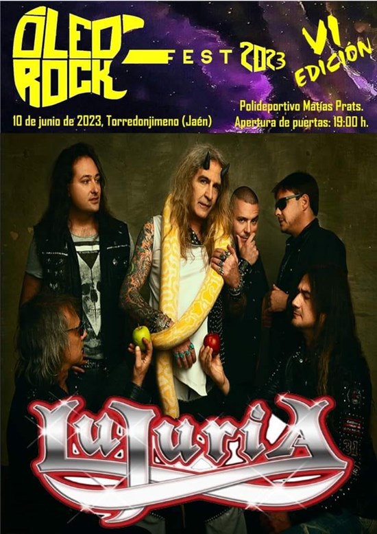 Lujuria, primera confirmación del OleoRock Festival 2023, VI edición, 10 de junio en Torredonjimejo, Jaén, en el Polideportivo MatÃas Prats. Entradas a 5 euros aquÃ, luego, el 1 de febrero subirán de precio.