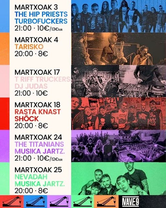 La Nave 9 de Bilbao nos deja su agenda de conciertos del mes de marzo con los eventos destacados de The Riff Truckers o Shöck
