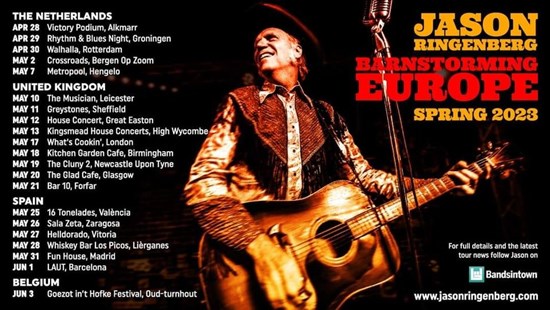 En mayo Jason Ringenberg girará por la penÃnsula, tendrá paradas en Valencia, Zaragoza, Vitoria-Gasteiz, Liérganes, Madrid y Barcelona.