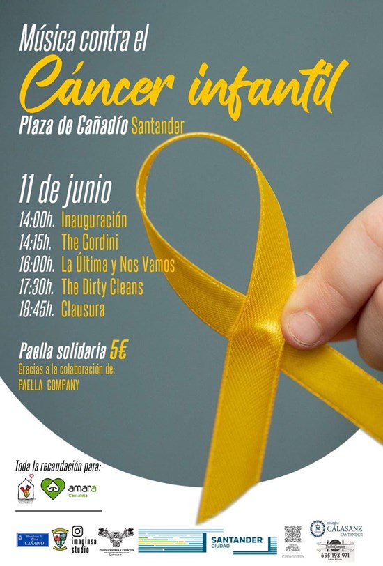 Tras su cancelación hace semanas, vuelve el evento Música contra el Cáncer Infantil en la Plaza CañadÃo de Santander, será el 11 de junio a partir de las 14:00 h, con buena música y paella solidaria (con raciones al precio simbólico de 5 euros)