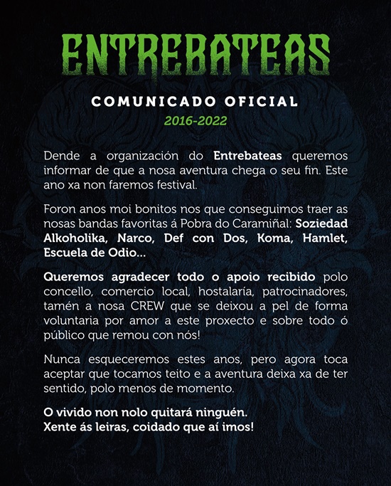 Este año no habrá Entrebateas, festival que se suele celebrar en septiembre en A Pobra do Caramiñal. Comunicado