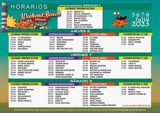Horarios del Weekend Beach de Torre del Mar de la próxima semana, un cartel variopinto donde puedes ver a Narco, Fangoria y Morgan el mismo día, o Demen, Editors y Sidecars.