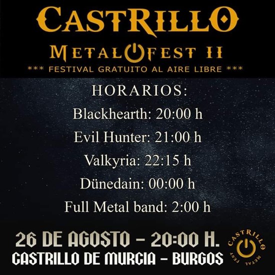 Y el 26 de agosto, en Castrillo de Murcia, Burgos, una nueva edición del Castrillo Metal Fest, segundo episodio que acaba de confirmar estos horarios: