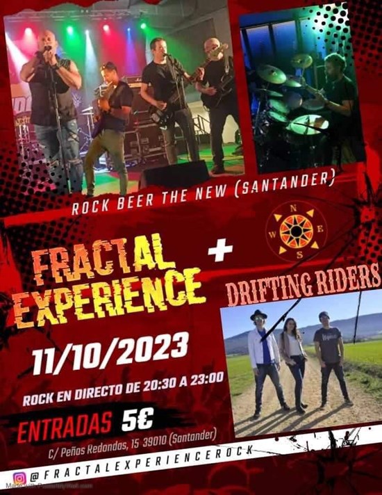 Fractal Experience y Drifting Riders, miércoles 11 de octubre en el Rock Beer The New, Santander, desde las 20.30 h hasta las 23:00 h. Entradas a 5 euros.
