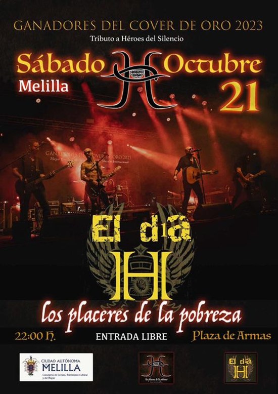 Los Placeres de la Pobreza, grupo tributo a Héroes del Silencio y recientemente ganadores del Cover de Oro 2023, actuará el sábado 21 de octubre en la Plaza de Armas de Melilla la Vieja a partir de las 22.00 horas.