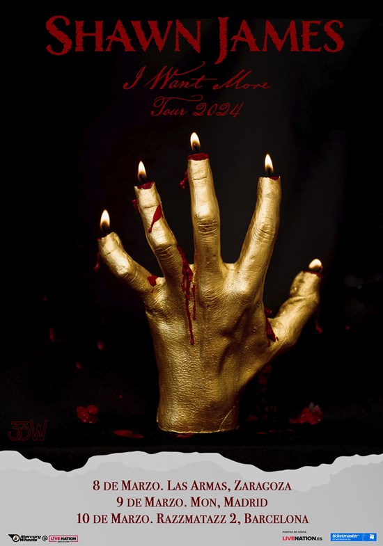 Shawn James tocará en España en marzo, confirmando tres fechas, Zaragoza, Madrid y Barcelona. Entradas a la venta general el viernes 17 de noviembre a las 10:00h en livenation.es y ticketmaster