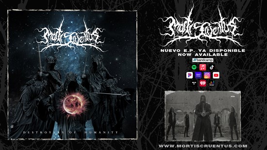 La banda de black/death metal alicantina Mortis Cruentus acaba de estrenar su nuevo lanzamiento en forma de EP en todas las plataformas digitales. Se trata de un pequeño adelanto de lo que será su próximo larga duración, que está previsto vea la luz a finales del año que viene. Titulado "Destroyers of Humanity", consta de 3 temas. Para más información visita www.mortiscruentus.com o las RRSS de la banda.