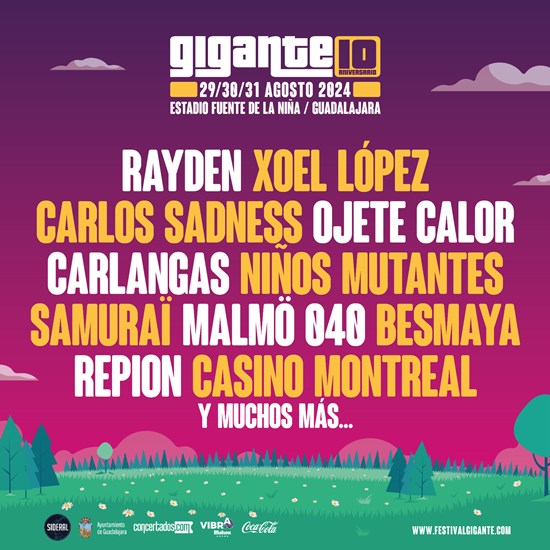 Carlangas, Niños Mutantes, Samuraï, Malmö 040, Besmaya, Repion y Casino Montreal también se unen al décimo aniversario del festival, que se celebrará los dÃas 29, 30 y 31 de agosto en Guadalajara. Los abonos ya están a la venta por 45€ + gastos de gestión, y los VIP a 90€ + gastos, en la web