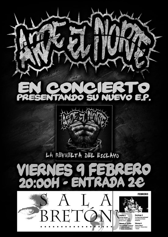 Arde el Norte presentará su disco debut, "La Revuelta del Esclavo", el viernes 9 de febrero en la Sala Bretón de El Aatillero,. Cantabria, por tan sólo 2 euros y concierto a las 20:00 h.