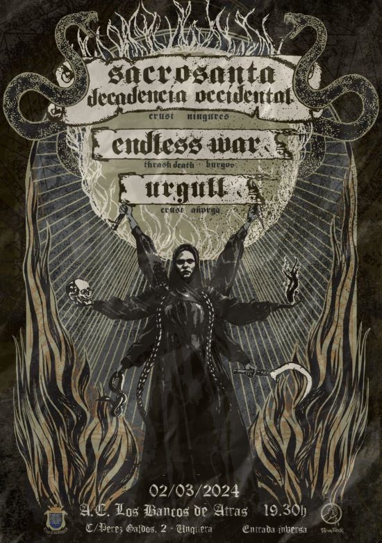 Sacrosanto, Endless War y Urgull, juntos el 2 de marzo en Unquera, Cantabria