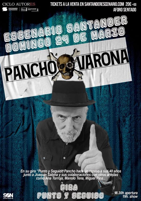 El Escenario Santander acogerá, un domingo más, un nuevo evento dentro del Ciclo Autores, el 24 de marzo le toca el turno a Pancho Varona, a partir de las 18:30 h. Entradas en santanderescenario.com a 20 euros más gastos