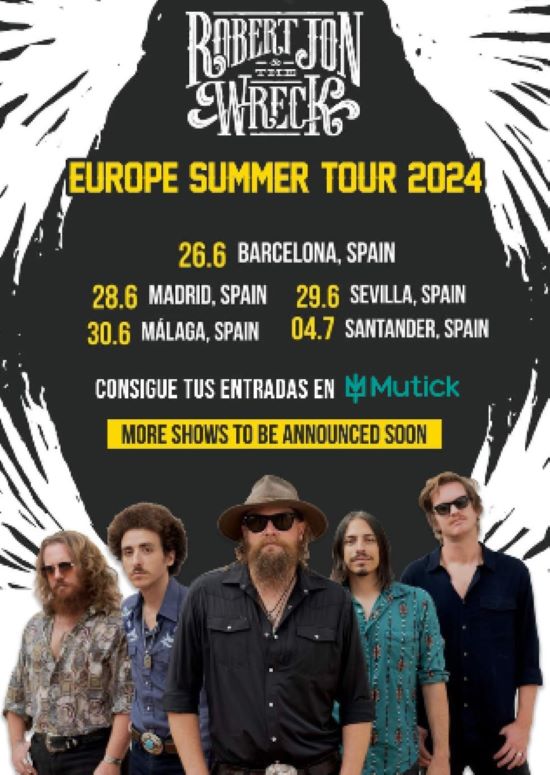 Robert Jon And The Wreck a finales de junio y primeros de Julio de gira por la peninsula. La magia de Robert Jon reside en su habilidad para conectar los riffs de guitarra de Lynyrd Skynyrd, el alma de los Allman Brothers y el gancho de Tom Petty en canciones libres de clichés y llenas de energÃa.