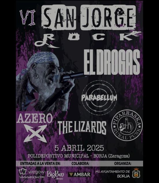 Cartel de la sexta edición del San Jorge Festival en el Polideportivo Municipal de Borja, Zaragoza, este año con El Drogas encabezando el cartel