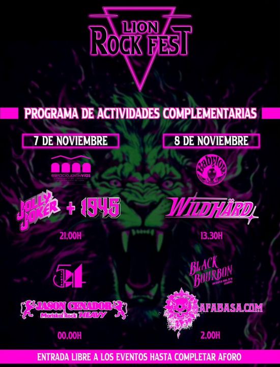 Estas son las actividades complementarias del Lion Rock Fest de los dÃas 7 y 8 de noviembre en León, se trata de las pinchadas de Jolly joker, Wildhard, Rafa Basa y Jason Cenador de Mariskalrock. Entradas en www.lionrockfest.com