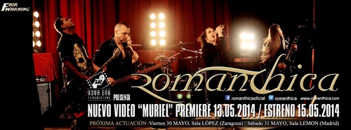 Romanthica acaban de estrenar por todo lo alto "Muriel", su nuevo videoclip del disco "Eterno", un trabajo llevado a cabo entre Romanthica y Nova Era Produccions, responsables también del anterior videoclip “Mercurio”. La localización fue un cine abandonado de 1913 y la atmósfera es indescriptible. Próximamente estarán en Barcelona (St. Boi), Zaragoza y Madrid los días 17, 30 y 31 de mayo respectivamente.