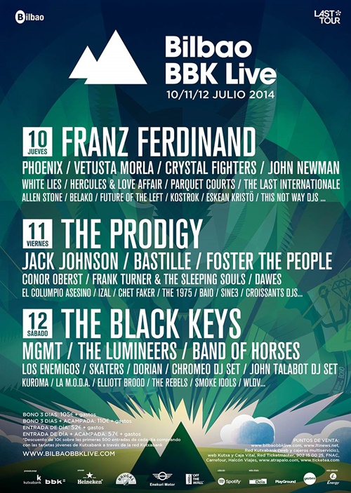 La presencia en el cartel 2014 del Bilbao BBK Live de artistas como The Black Keys (exclusiva en el Estado en festivales este verano), Franz Ferdinand, The Prodigy, Phoenix, Jack Johnson, MGMT, Vetusta Morla, Foster The People o The Lumineers ha posibilitado que esta novena edición vaya camino de agotar bonos por primera vez en la historia del festival.