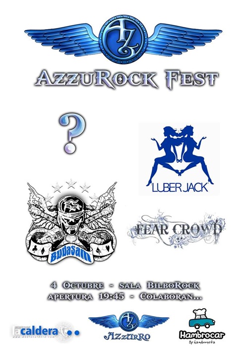 En octubre, la Sala Bilborock de Bilbao, acogerá el Azzurrro Rock Fest para promocionar la escena local de rock y metal de calidad, un evento organizado por el conocido local Azzurock Rock Bar. La fecha elegida es el 4 de octubre y las primeras confirmaciones son Fear Crowd, Luber Jack y BudaSam. 12 € con dos consumiciones incluÃdas. Evento Facebook.