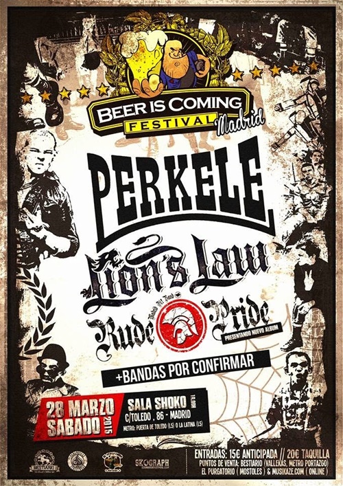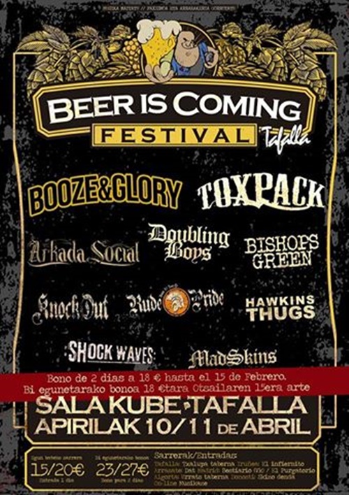 En marzo nacerá un nuevo festival itinerante bajo el nombre de Beer Is Coming Festival que tendrá dos paradas, en Madrid el 28 de marzo en la sala Shoko y los dÃas 10 y 11 de abril en la sala Kube (Tafalla, Navarra). Os dejamos con los carteles de ambos acontecimientos. Atención abono especial para Tafalla de 18 € dos dÃas si compras antes del 15 febrero.
