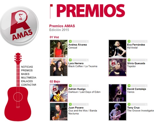 Hace un par de días se celebró gala final de los Premios Amas 2015, una serie de premios dirigidos a la música asturiana, entre los ganadores se encuentra Adrián Huelga de Darksun como mejor bajista, Rubén Álvarez de Crudo, Dixebra como mejor guitarrista, Chez García de Alquimia como mejor teclista, mejor letrista Victor García de Warcry, Pablo Martínez, cantante de Desakato, premio a la mejor producción por su gran trabajo en Ovni Estudios, Alquimia mejor directo, Skama la Rede mejor diseño para su disco "Avante", "Buen Viaje" de Desakato como mejor disco de rock.. Más info en www.premiosamas.com/premios.asp